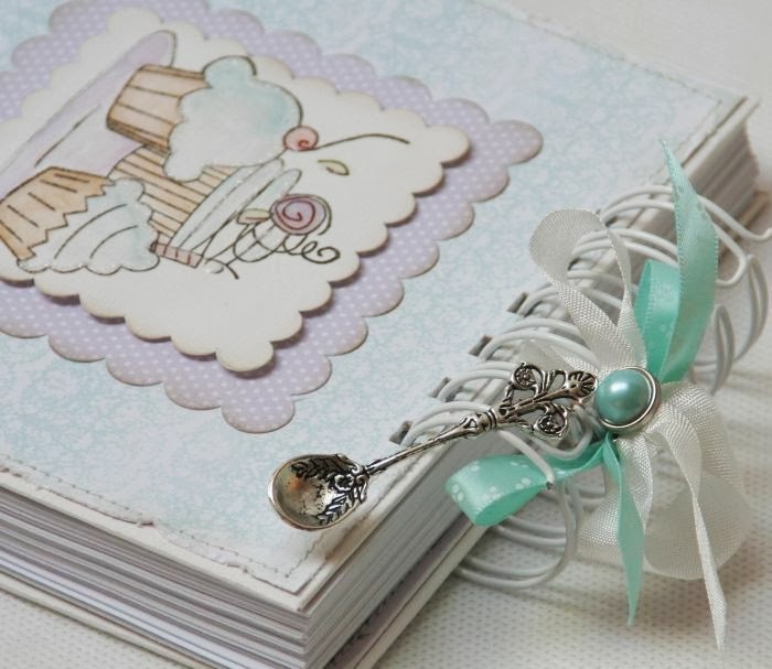 Pierwsza kartka jest skromna, praktycznie bez dodatków, ozdobiona jedynie maszynowymi przeszyciami, odrobiną brokatu i preparatu glossy. Ślubna para idealnie wkomponowała sie w romantyczna bramę na papierze :)